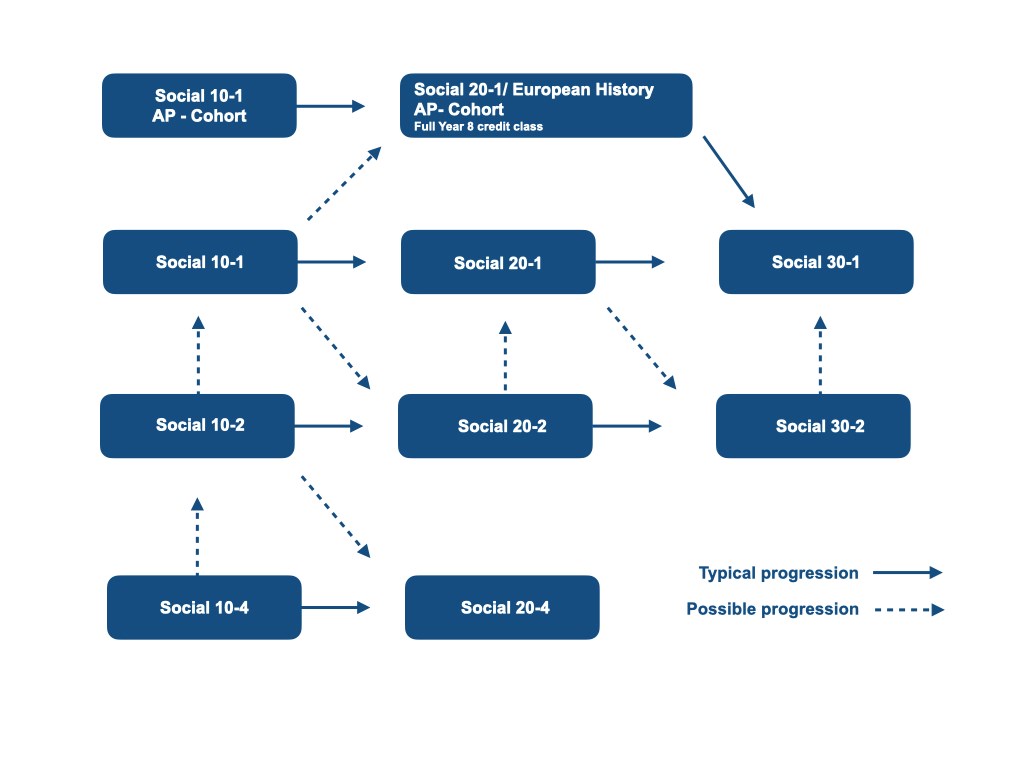 Students are encouraged to consult with their teachers, parents and counselors to align their choice of Social Studies program with their personal plans in order to enhance their opportunity to successfully achieve their goals. For more detailed information about the various Social Studies programs (or pathways), please consult the Course Selection Guide.
